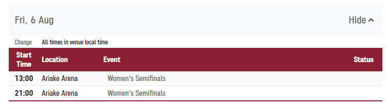 여자배구 준결승(4강전) : 8월 6일 금요일 13시 혹은 21시