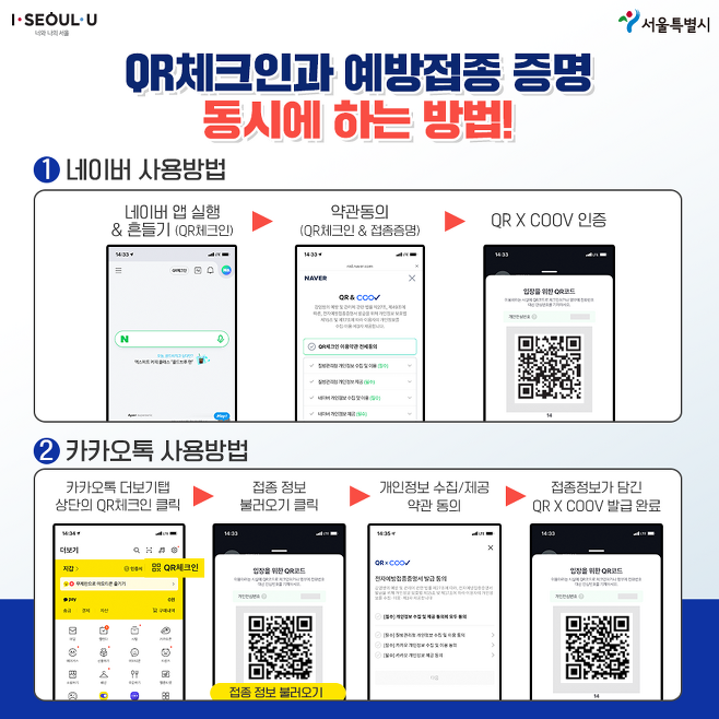 QR체크인과 예방접종 증명 동시에 하기!