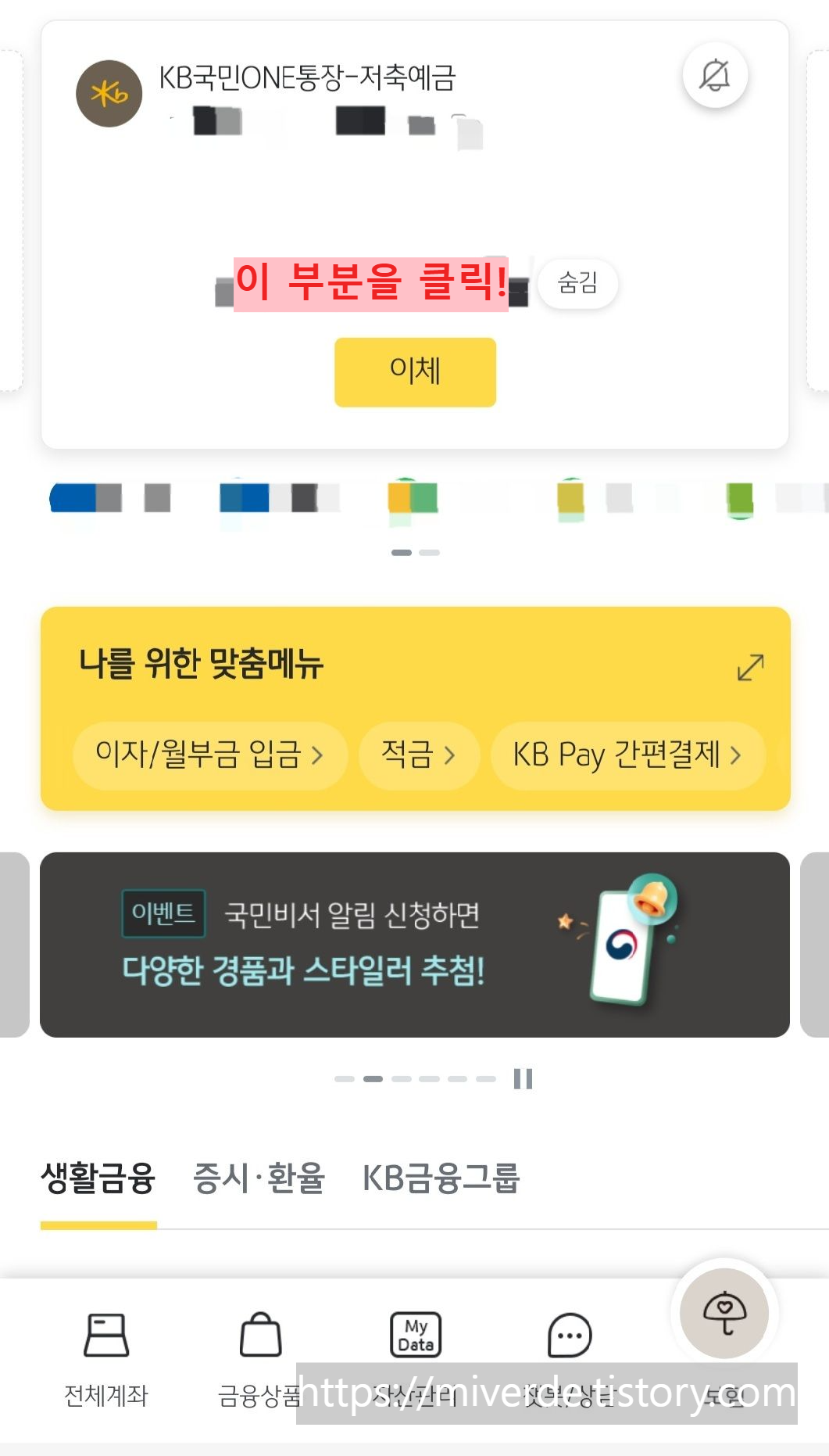 2. 통장 잔액이 나와있는 부분을 클릭해주세요