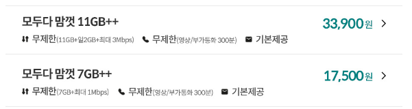 추천 2 : 실사용 가성비 요금제! 3 Mbps 무제한