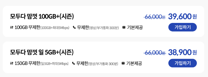- 제외 요금제 : 데이터 년 9GB, 5천원 미만 요금제
