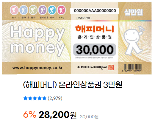 지마켓에서는 월초에 큰 손해 없이 5만원짜리 해피머니, 북앤라이프, 컬쳐랜드 상품권을 살 수 있고 월초를 놓쳤다면 3만원짜리 상품권을 사면 600원 정도를 손해보지만 캐시백을 2천원 받을 수 있습니다.