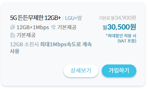 | 테이터/통화 무제한 (12GB + 1Mbps) |