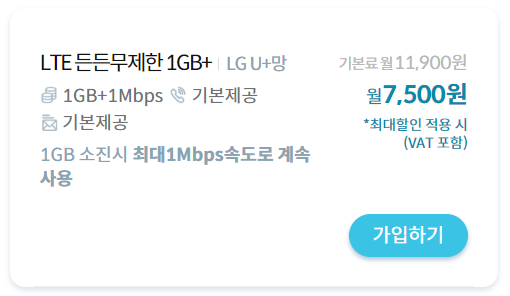 LTE든든무제한 1GB+ | 월 7,500원 👉 알아보기 |