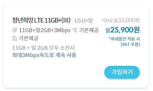 | 테이터/통화 무제한 (11GB + 3Mbps) |