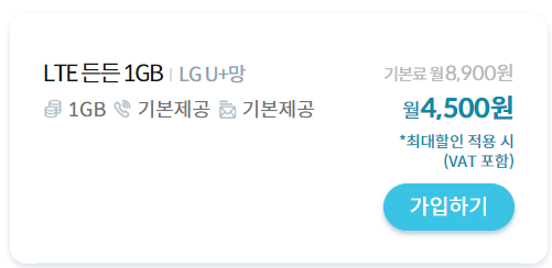 LTE든든 1GB | 월 4,500원 👉 알아보기 |