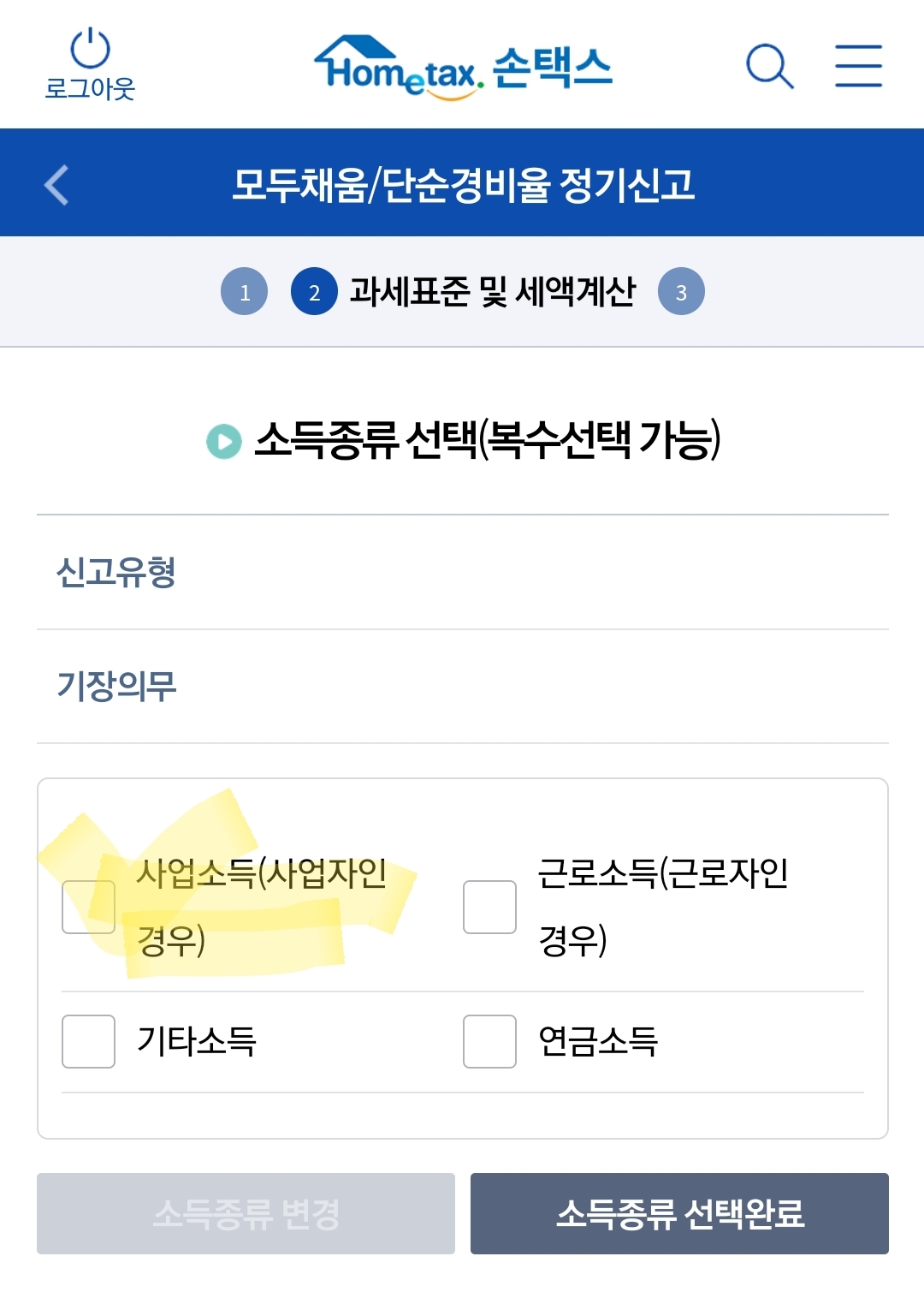 홈택스에서 블로거 종소세 신고 방법