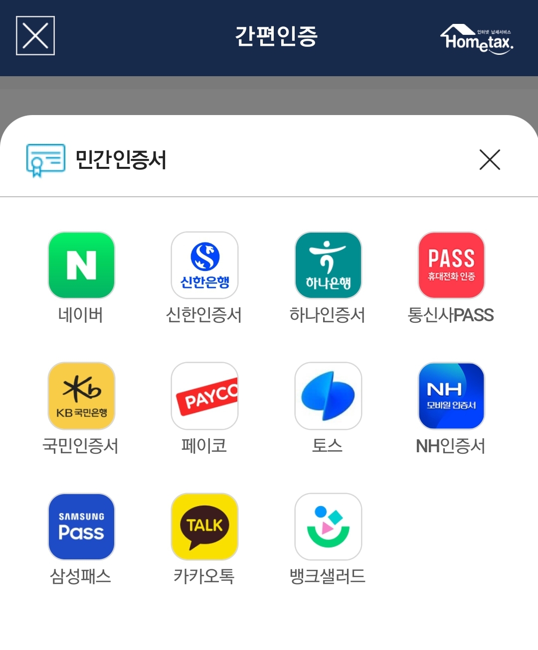 네이버인증서, 페이코인증서가 가장 편합니다. 은행인증서가 있으신 분들은 은행인증서를 이용하셔도 돼요. 저는 KB인증서를 사용했습니다.