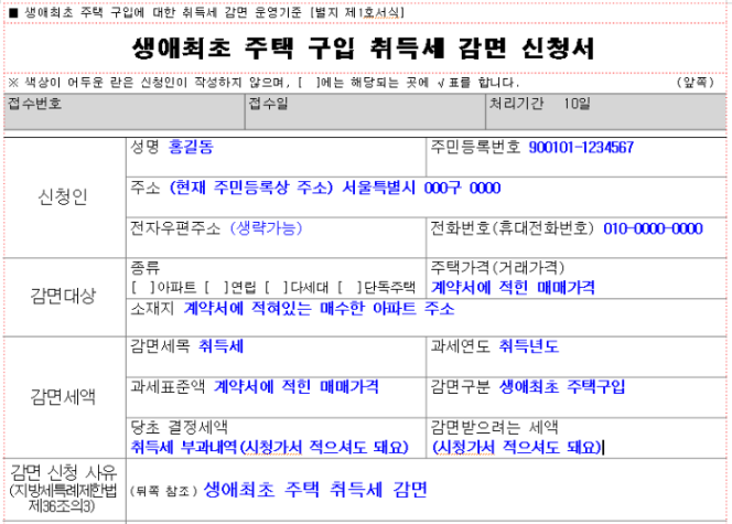 생애최초 취득세 감면 신청서 다운로드